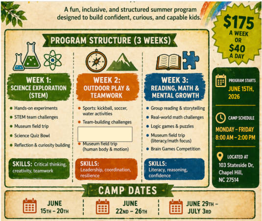 Summer months present both an opportunity and a challenge for families. Without structured programming, many children experience learning loss, reduced physical activity, and limited opportunities for positive peer engagement. The Pathfinder Camp was created to address these challenges by offering a purposeful, engaging summer experience rooted in enrichment rather than passive supervision.